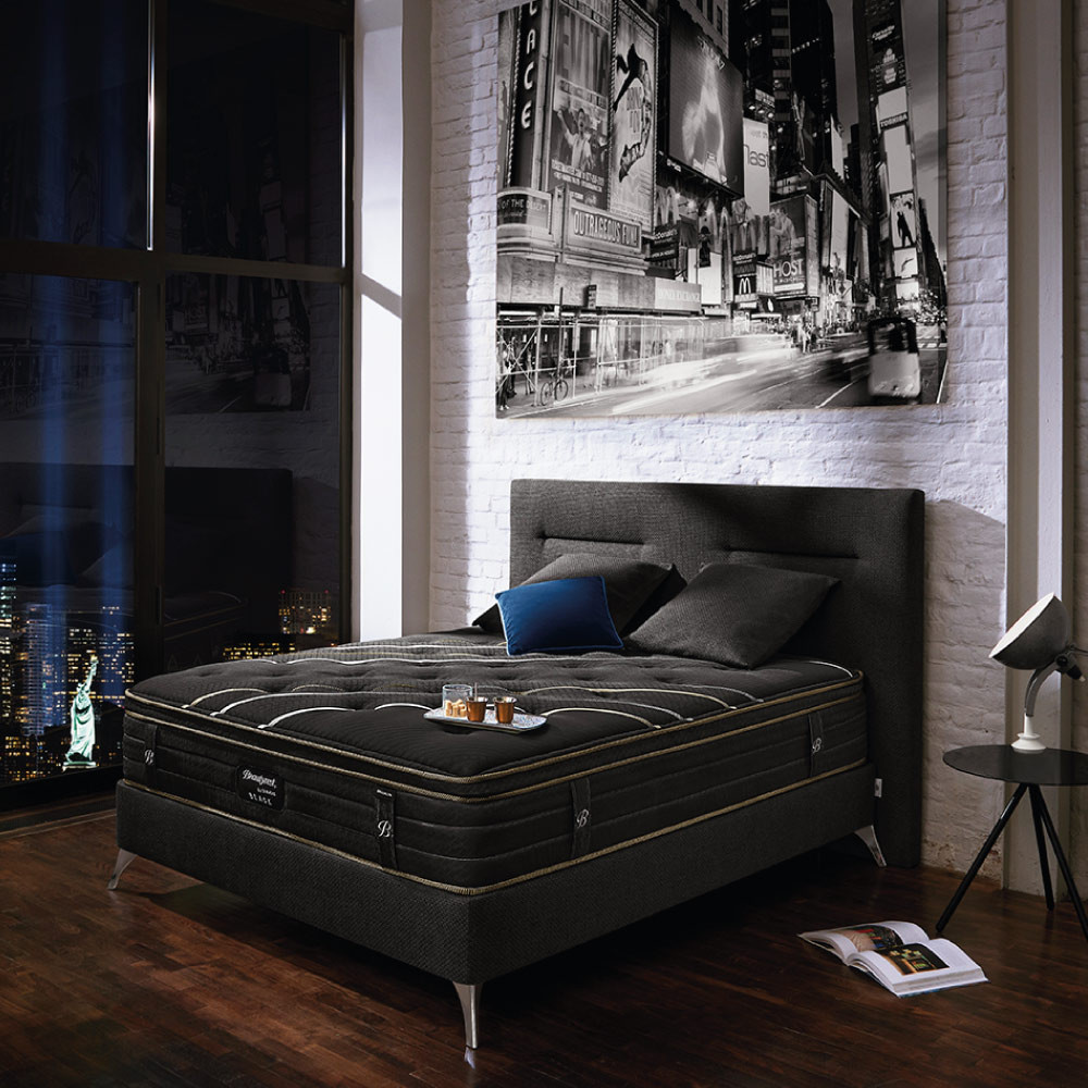 Le matelas Brooklyn de la collection Beautyrest Black par Simmons incarne l’alliance parfaite entre élégance, technologie et confort absolu. Plébiscitée dans les plus grands palaces du monde, cette collection représente le sommet du savoir-faire Simmons, avec des produits garantis 7 ans. D’une hauteur de 36 cm, le matelas Brooklyn offre un confort ferme et une indépendance de couchage totale grâce à ses 952 ressorts ensachés Blacksoft®. Sa suspension à 5 zones s’adapte à chaque partie du corps pour un soutien précis et un alignement parfait de la colonne vertébrale. Il est composé de latex gel, de mousse Elivéa® et de ouate Quallofil® by Dacron®, pour un confort durable et une excellente régulation thermique.