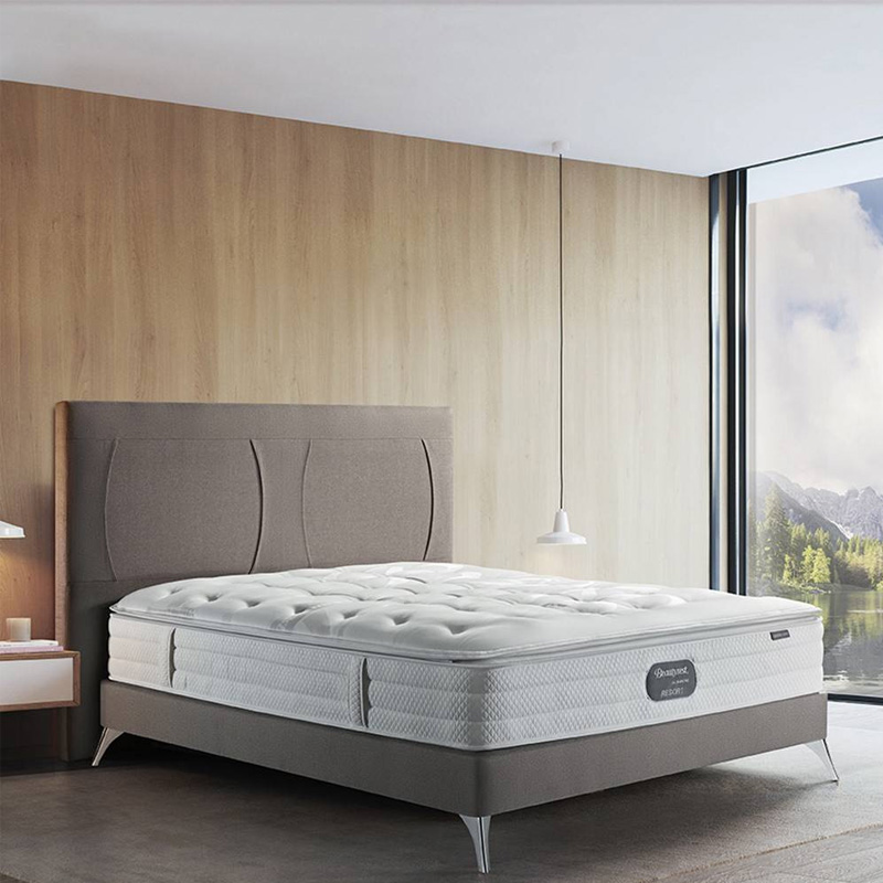 Le matelas Resort Lake de la collection Beautyrest Resort par Simmons combine technologie avancée et confort haut de gamme pour des nuits réparatrices. Son soutien ferme et son accueil enveloppant procurent une agréable sensation de légèreté. Grâce à sa suspension Fullsoft® à ressorts ensachés, il offre un confort optimal et une excellente indépendance de couchage. D’une hauteur de 31 cm, il dispose du système No Flip® avec une face de couchage permanente, garnie de mousse d’accueil souple, de lin, de ouate Thermoplus et d’Elivéa, pour un confort durable et une régulation idéale de la température.